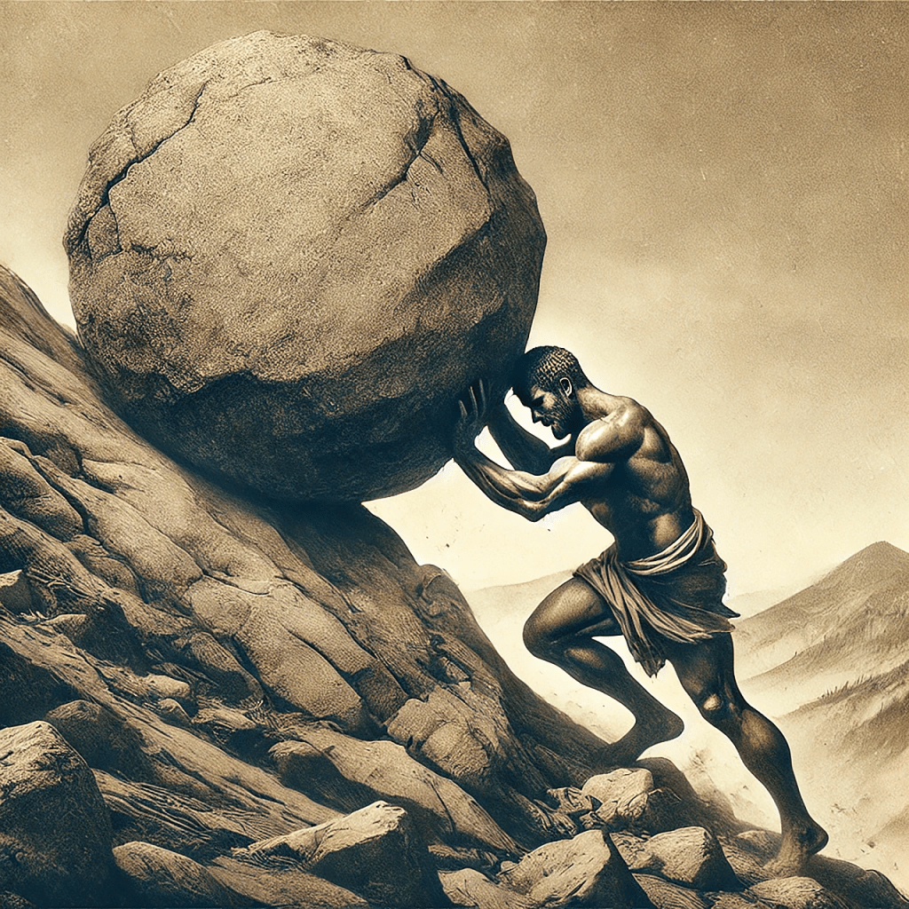 Sisyphus and that darn rock. Image credit: xat-ch via pixabay